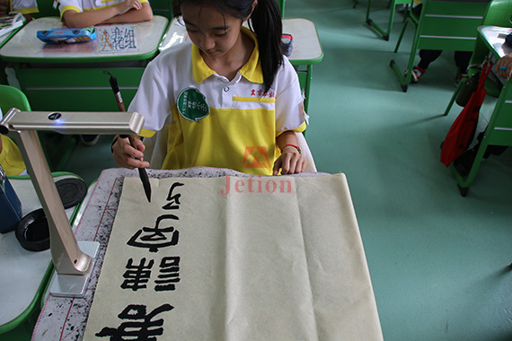 書法藝術(shù)是中華民族的優(yōu)秀文化傳統(tǒng),從2008年教育部下達《在中小學(xué)校開設(shè)毛筆字書法課程》通知到2013年印發(fā)《中小學(xué)書法教育指導(dǎo)綱要》,編寫小學(xué)毛筆書法教材,書法作為一門正式科目走進中小學(xué)課堂。書法是視覺造型藝術(shù),書法欣賞和實踐教學(xué)是以傳遞書法藝術(shù)視覺信號并讓學(xué)生充分感知和體驗為內(nèi)容的藝術(shù)教學(xué)。因此,書法教學(xué)質(zhì)量和效率的高低在很大程度上取決于傳遞視覺信號手段的先進程度。而吉星無線移動視頻展示臺是最適用于書法教學(xué)展示的先進教學(xué)設(shè)備,高清、方便、互動的特點更能滿足廣大愛好書法師生的需求。