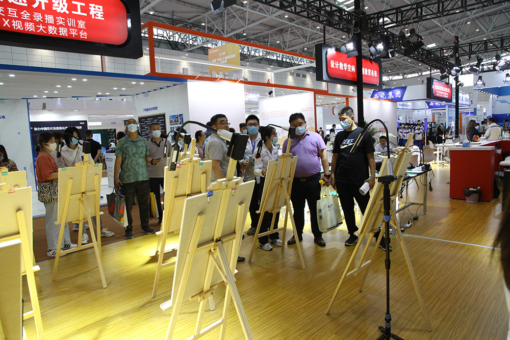 現場最吸睛的莫過于是實訓5G無線全錄播系統展區了,來往的觀眾紛紛舉起了手機拍攝系統運行的過程,精心布置的展區現場直觀展示了全錄播系統與繪畫、烹飪、醫護、電子雕刻等不同職教場景的高度融合。