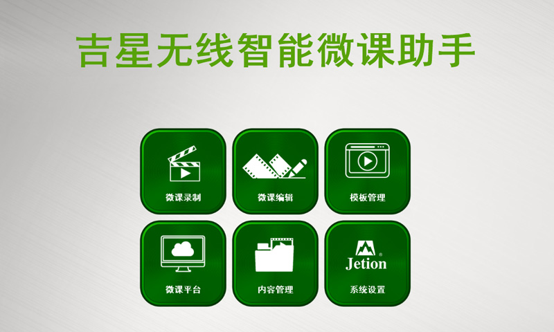 由吉星自主研發(fā)、真正實(shí)現(xiàn)微課錄制和編輯的工具軟件。它可與吉星無線微錄儀視頻展臺(tái)直接連接,為用戶提供“微課錄制、微課編輯、自定義模板管理、微課上傳”等多種微課制作、編輯的常用功能。